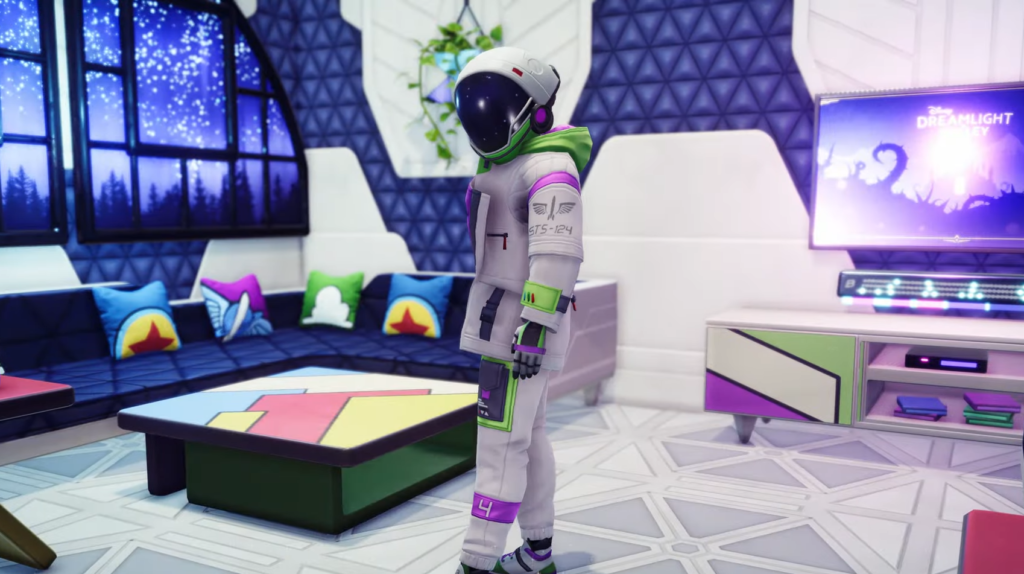 - It includes five space/Buzz Lightyear-themed clothing items, which are a helmet, jacket, gloves, shoes, and pants, and two other Pixar clothing assets, a Luxo Jr. jersey and a Pixar Ball ear headband.