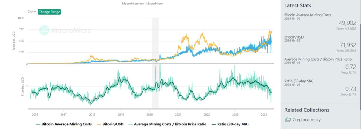 The average Bitcoin mining cost is $49,902, and the current BTC price is above $70,000. After the halving on April 20, the average Bitcoin mining cost will rise above $80,000. Thus, for miners to continue their operations, the BTC price must trade higher than $80,000.