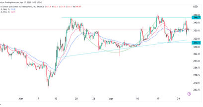 BNB Coin price moved sideways on Thursday as cryptocurrencies pulled back. The Binance coin retreated to a low of $330, which was a few points below the year-to-date high of $352. It remains ~25% above the lowest level in March this year.