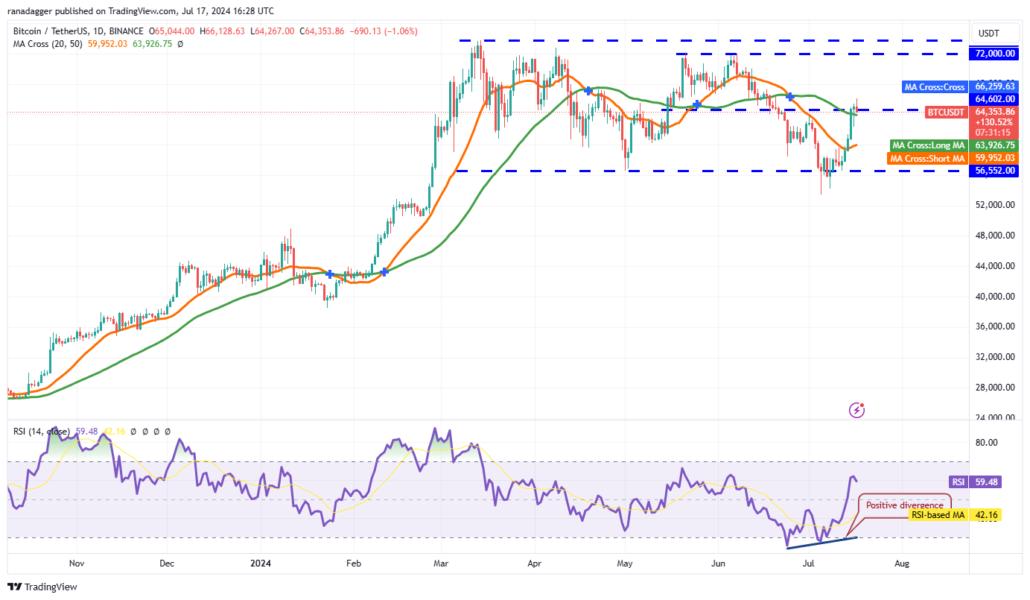 Bitcoin climbed above the 50-day simple moving average ($63,926) on July 15, indicating that the bulls are on a comeback.