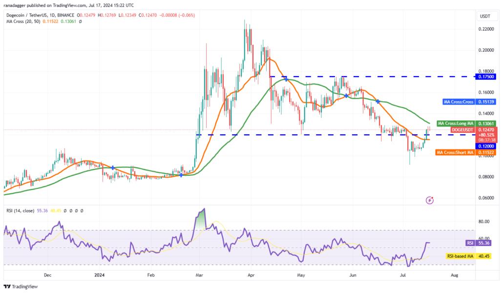 The bulls pushed Dogecoin (DOGE) back above the breakdown level of $0.12 on July 15, signaling that the markets rejected the lower levels.