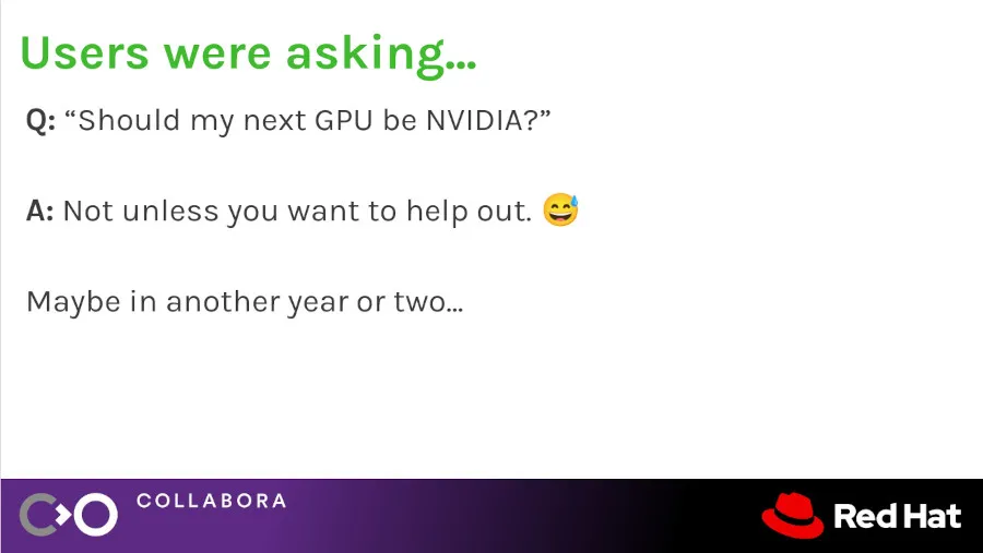 Those wishing to learn more can see the slide deck for the NVK status update. There is also these slides dedicated to NAK with the work on writing compilers in Rust for Mesa. The video presentation from XDC 2023 is embedded below.