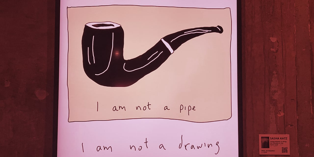 Jenni Pasanen created a Pegasus-inspired artwork combining digital painting and AI, while Elni Tomadaki exhibited a drawing paying homage to Magritte. Megan Laurent took another point of view with her work mixing autoportrait photography and AI.