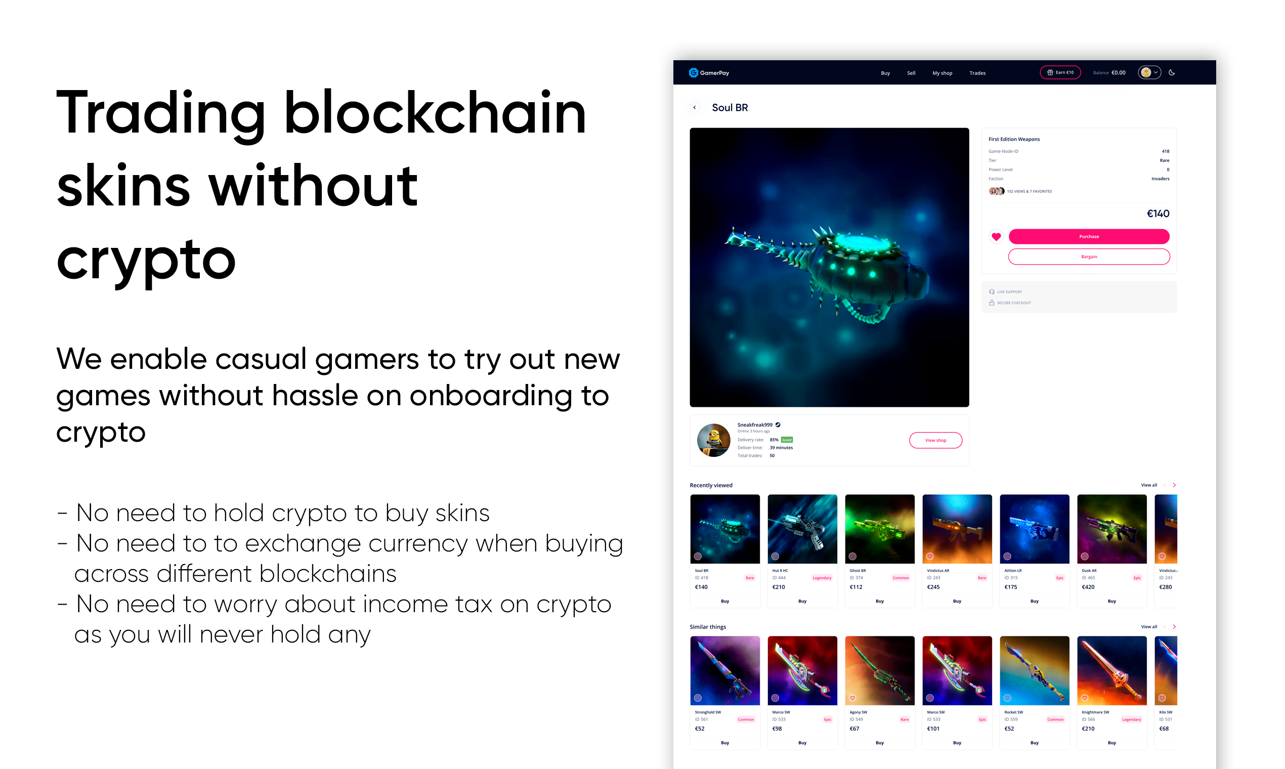 Until now, buying and selling NFTs from web3 games has been reserved for a narrow group of traders deep into crypto. But with GamerPay’s brand-new model, web3 players can, for the first time, buy and sell NFTs like they buy any other gaming skin, in “regular cash”.