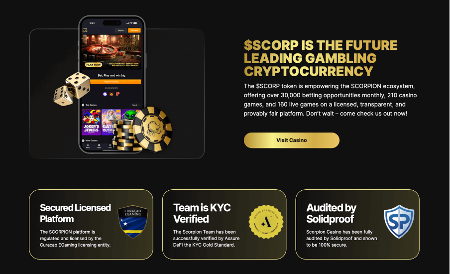 Scorpion Casino $SCORP is quickly becoming a standout in the cryptocurrency market, making it one of the best cryptos to buy and invest in today. Amid the latest updates and shifts within the digital currency landscape, $SCORP, alongside giants like Polkadot and Stellar, is paving the way for financial solutions.