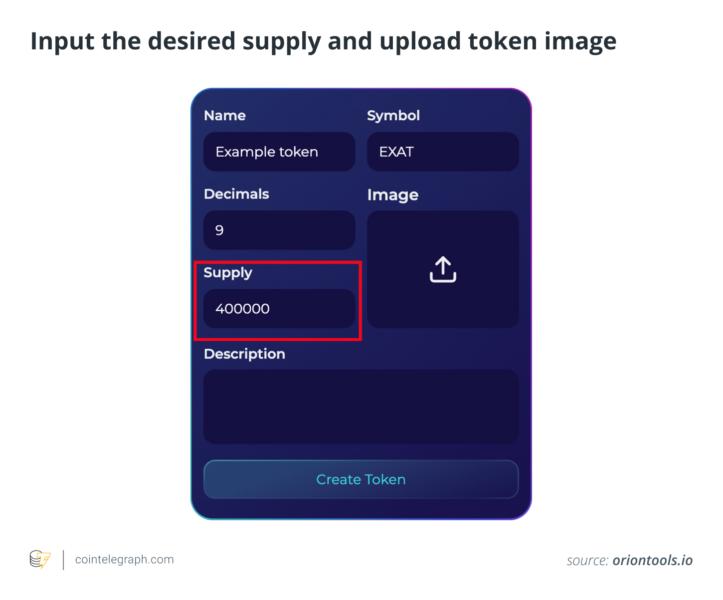 The next step is to input the desired supply and token image. Token supply dictates how much of a token actually exists.