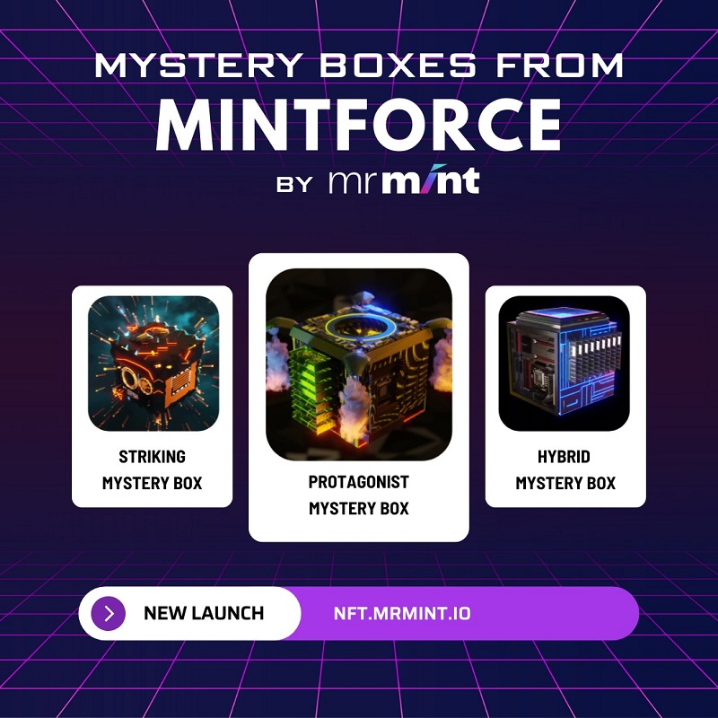 MINTFORCE is a collection of 40,000 units of Mystery Boxes and buying will begin on 20th November for the 4 key categories of mystery boxes. Each mystery box is unique in the sense that it opens up the opportunity for holders to gain very specific master cards, a total of 4, each with a different minting capacity – that which helps the user mint at least 5x worth of NFTs as compared to your investment. That isn’t all, NFTs are segregated into 3 categories, each with a specific Hashpower, something for the user to discover and make the best use of. Mystery boxes start from US$100 to US$500.