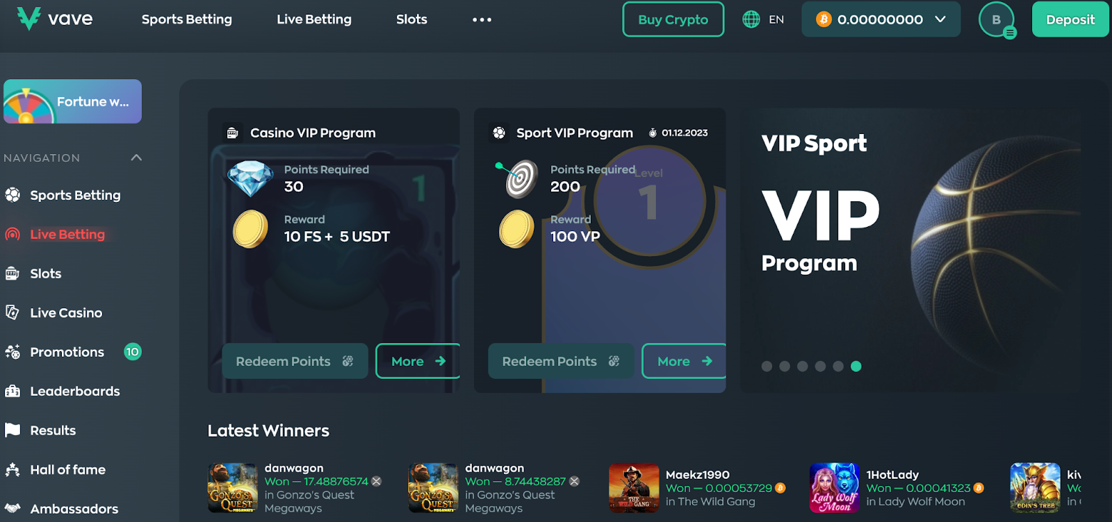 Vave – คาสิโนที่ให้เดิมพันด้วยเงินจริงที่ดีที่สุด