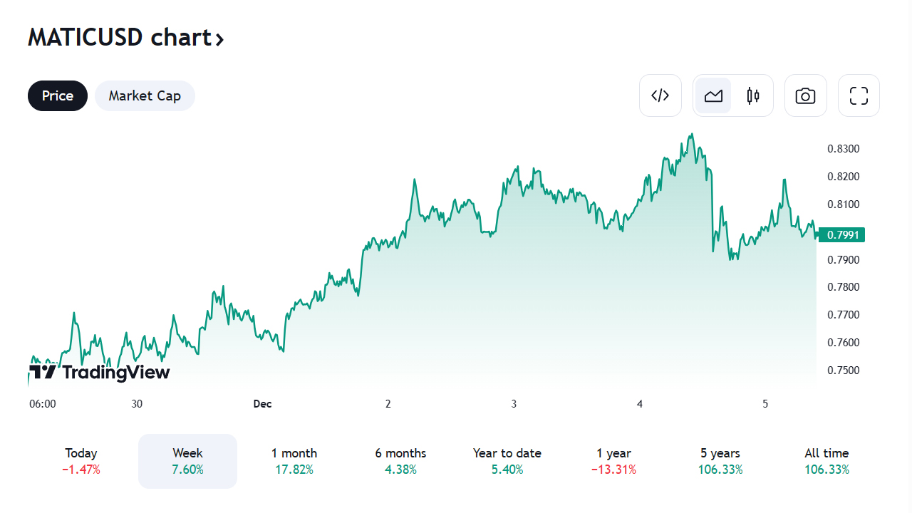 A Polygon (MATIC) árfolyama több mint 3%-kal emelkedett, és 0,8134 dollár körül mozog. Ezt az emelkedést a kereskedési volumen növekedése kíséri, ami a növekvő befektetői érdeklődést tükrözi.