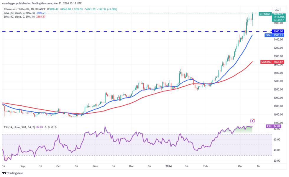 The bears tried to pull Ether (ETH) toward the breakout level of $3,600, but the long tail on the March 11 candlestick shows aggressive buying at lower levels.