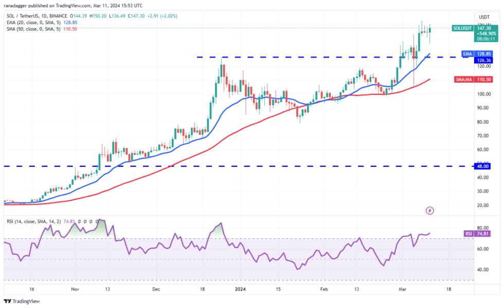 Buyers will take advantage of the situation and try to strengthen their position further by pushing the price above $153. If they do that, the SOLUSDT pair could resume the uptrend. The pair may then climb to $184.