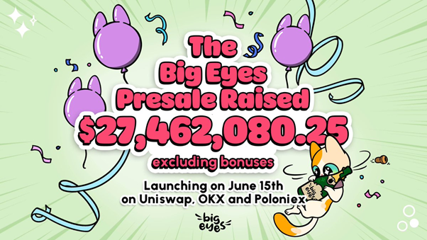During the presale, Big Eyes Coin collected an impressive $27,462,080.25 (excluding bonuses). The project is rapidly gaining momentum, and more listings are expected to be announced soon, further increasing its exposure and accessibility within the crypto market.