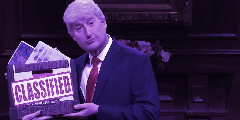 The digital collectables crept into the cultural spotlight Saturday night as the subject of satire on the late-night comedy show Saturday Night Live. Last night’s episode opened with a skit from comedian James Austin Johnson, who mimicked the former president’s announcement unveiling the digital collectibles.
