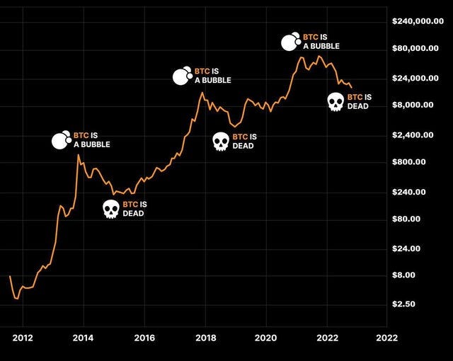 But this isn’t the first bitcoin crash. It’s gone through cycles of extreme optimism and pessimism for the last 10 years: